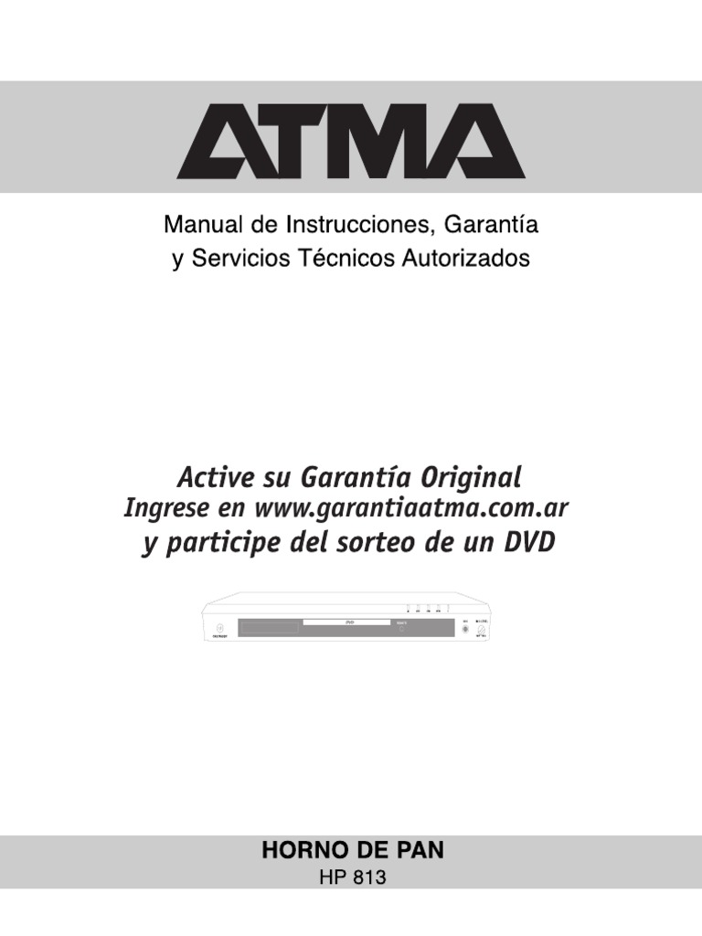 Manual de máquina de pan atma hp4060 en español, indicaciones, programas, cómo utilizarlo, servicio técnico. Manual y recetario de horno de pan atma hp 813 dependiendo del tamaño del archivo puede tardar en cargar, esperalo.